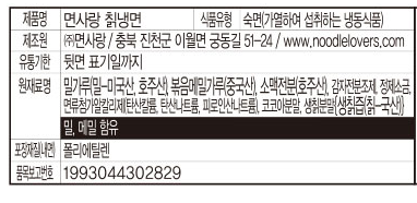원재료명 및 함량