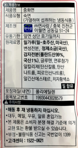 면사랑 중화면 230gX5 냉동