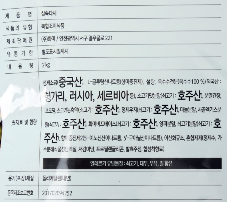 원재료명 및 함량
