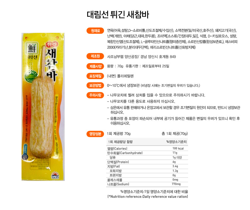 알뜰사각어묵, 1Kg, 사조대림, 냉장
