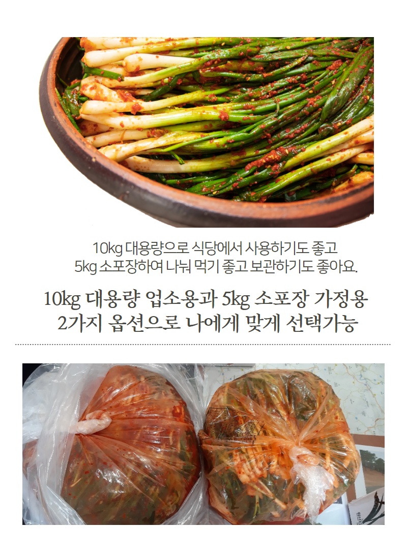 알싸한 맛이 일품인 초특급 프리미엄 쪽파김치 10kg