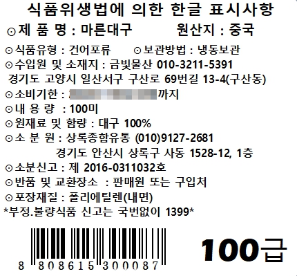 10마리씩 10줄 또는 20마리씩 5줄로 포장 됩니다.