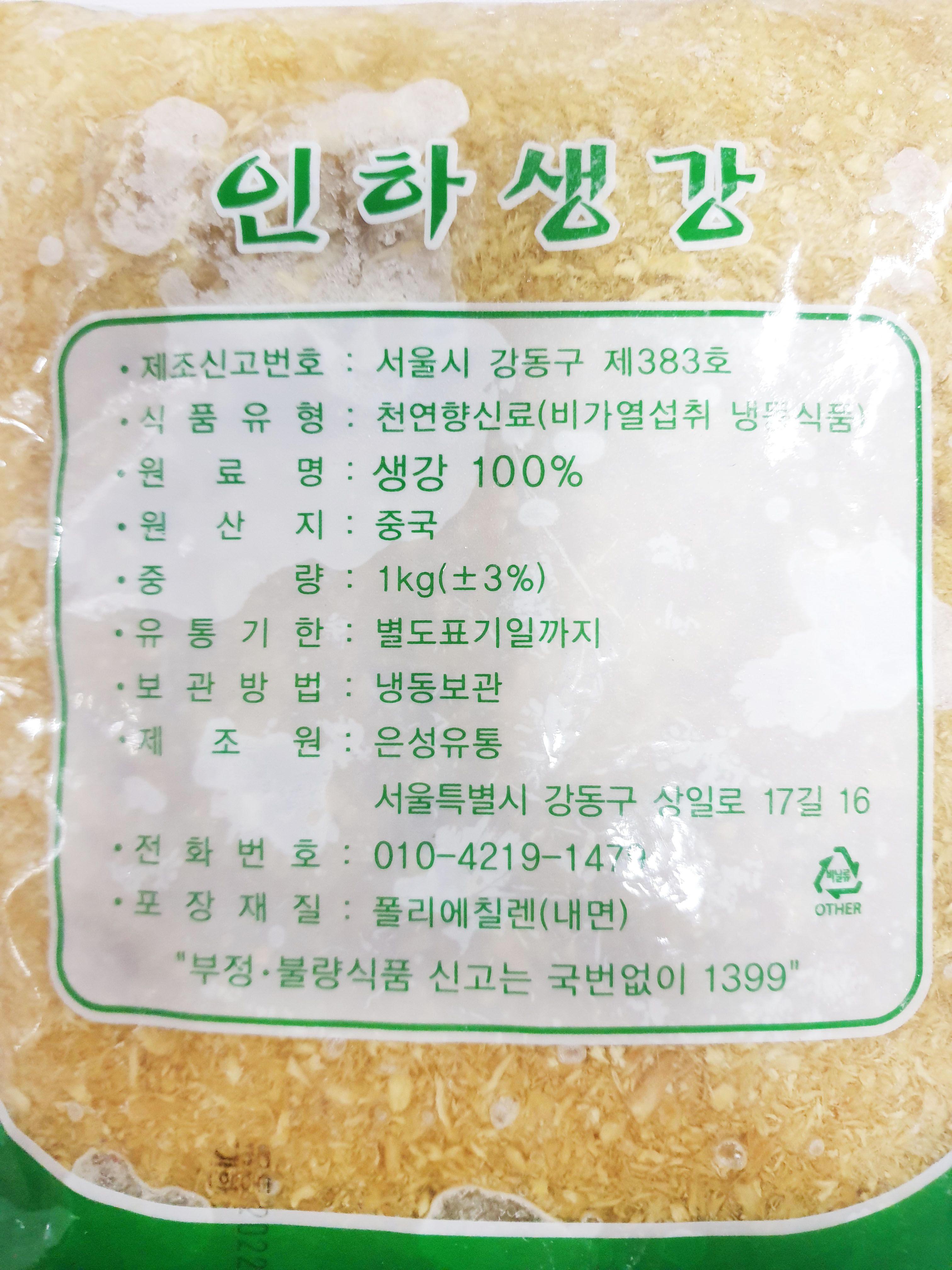 다진생강 은성유통 인하생강 1kg 냉동 이미지
