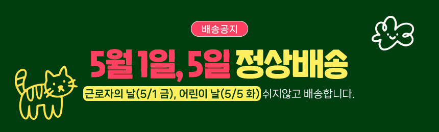 • 택배배송의 경우, 주말 및 공휴일 전일 및 당일에는 상품 발송이 어려울 수 있습니다.