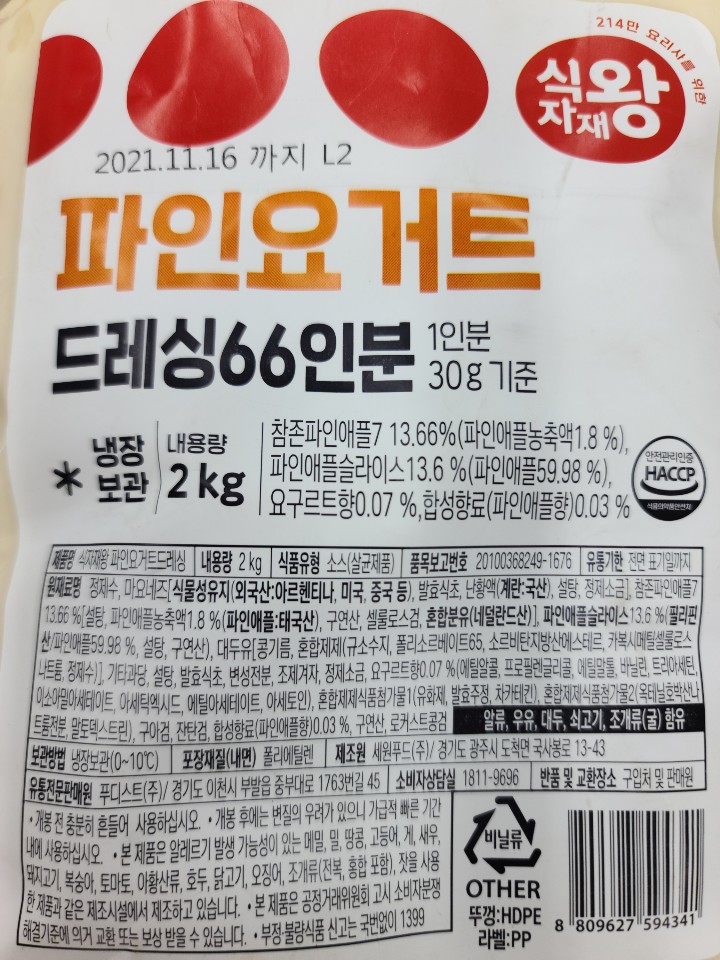 식자재왕 파인요거트 드레싱 2kg 이미지