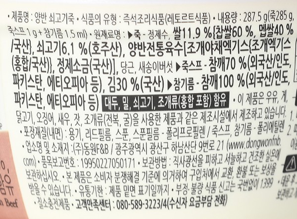 원재료명 및 함량