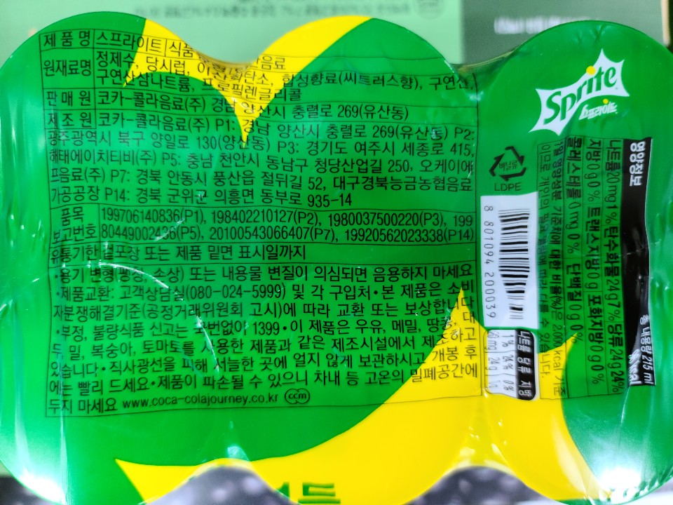 스프라이트캔215mlX6캔