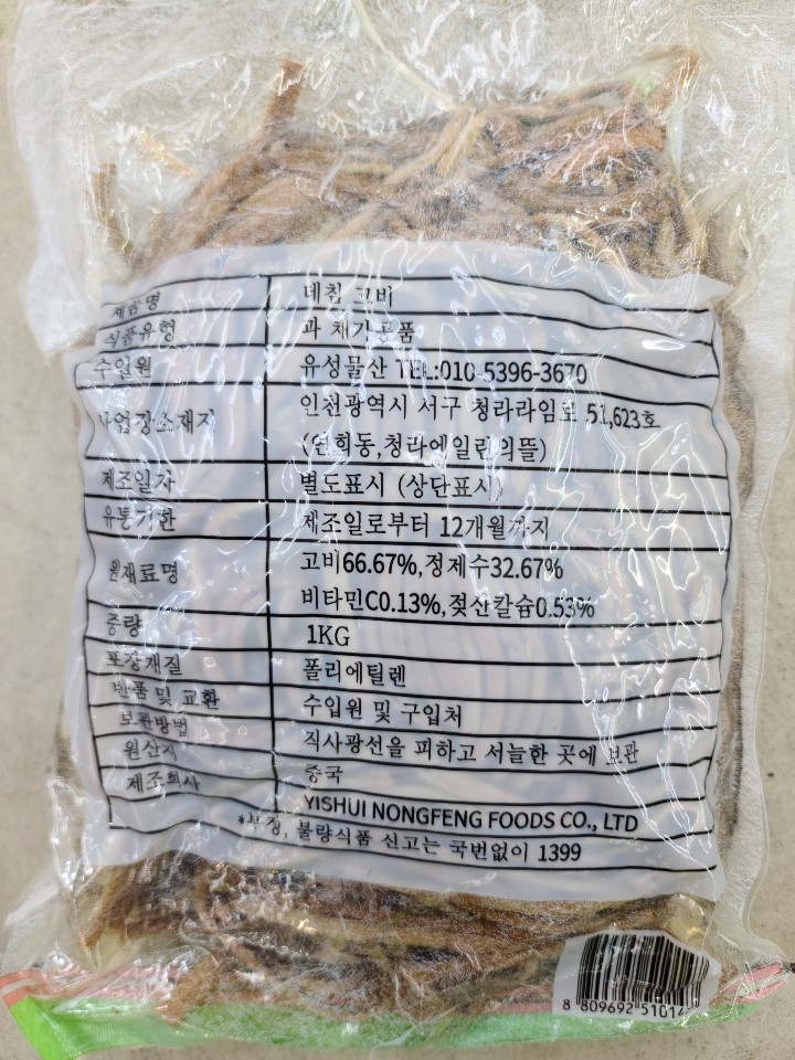 데친 고비 중국산 1kg