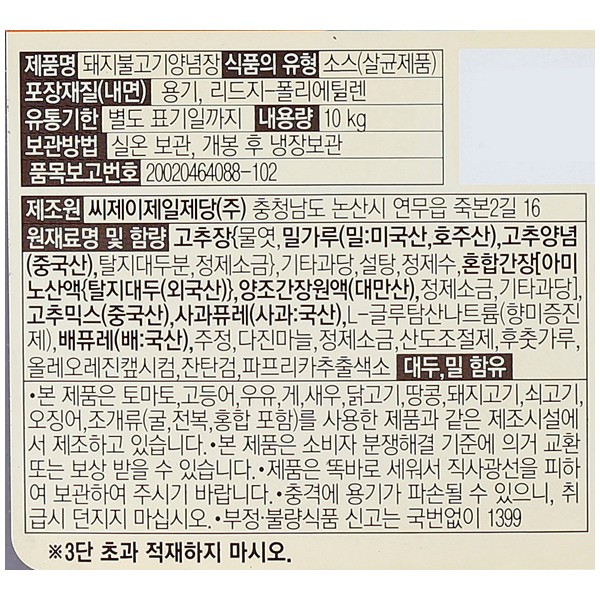 백설 매콤 돼지불고기양념장 10kg