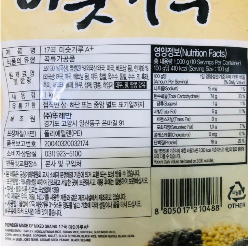 뚜레반 17곡미숫가루A+ 1kg 이미지