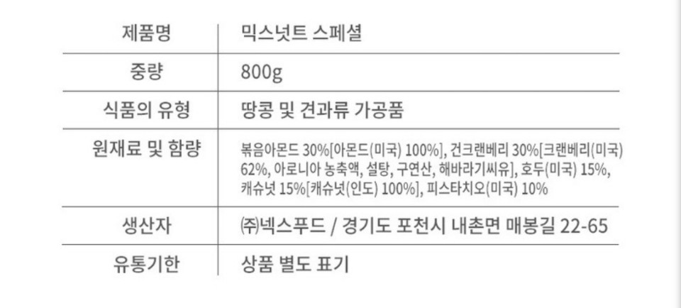 믹스넛스페셜 800g 이미지