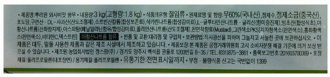 원재료명 및 함량