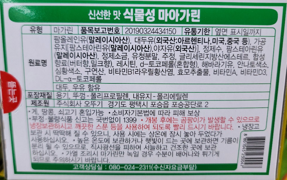 오뚜기 식물성 마아가린 200g