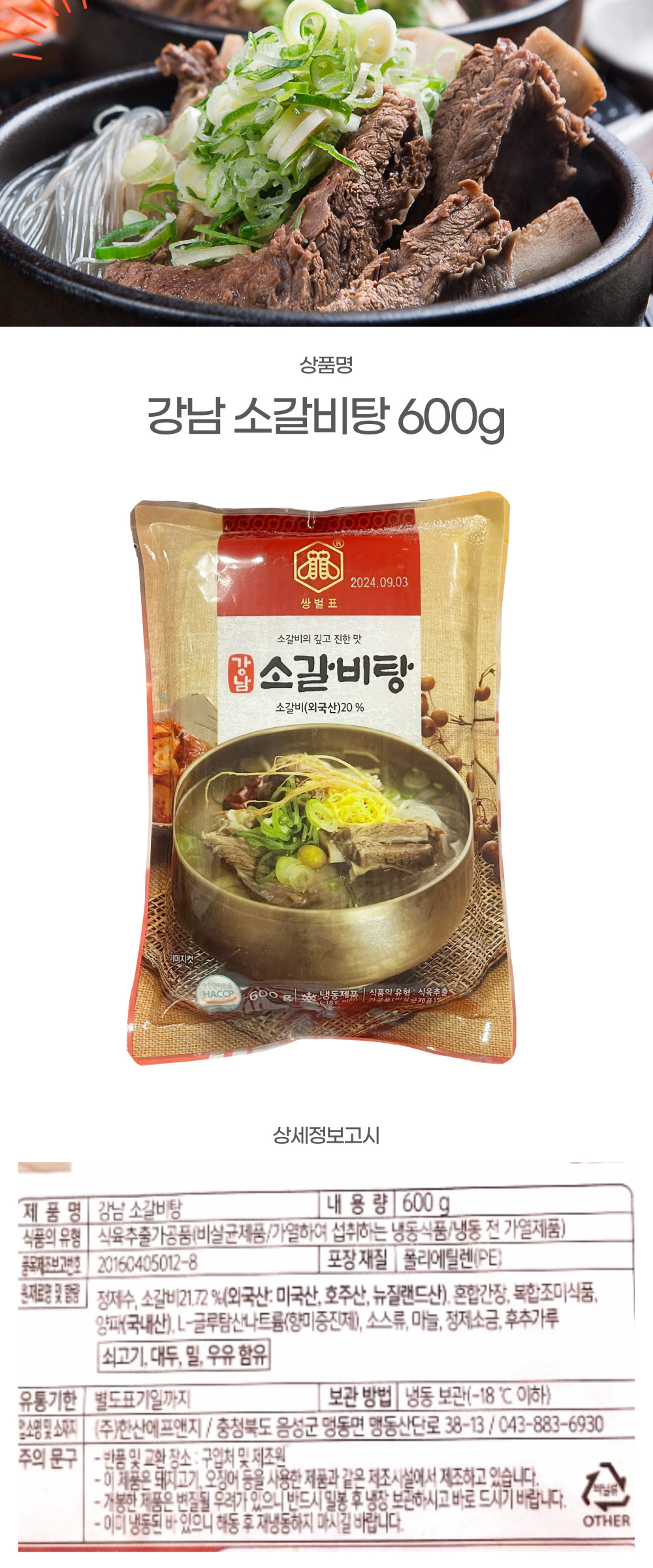 ★한정수량 초특가★ 강남 갈비탕 600g (제한) 이미지