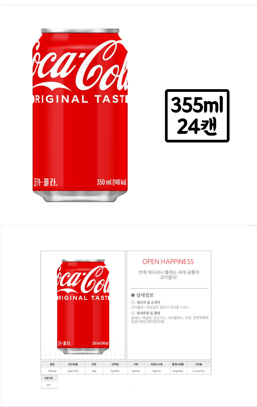 ★초특가★ 코카콜라 355ml (뚱캔,355ml x 24개입) 최저가 이미지