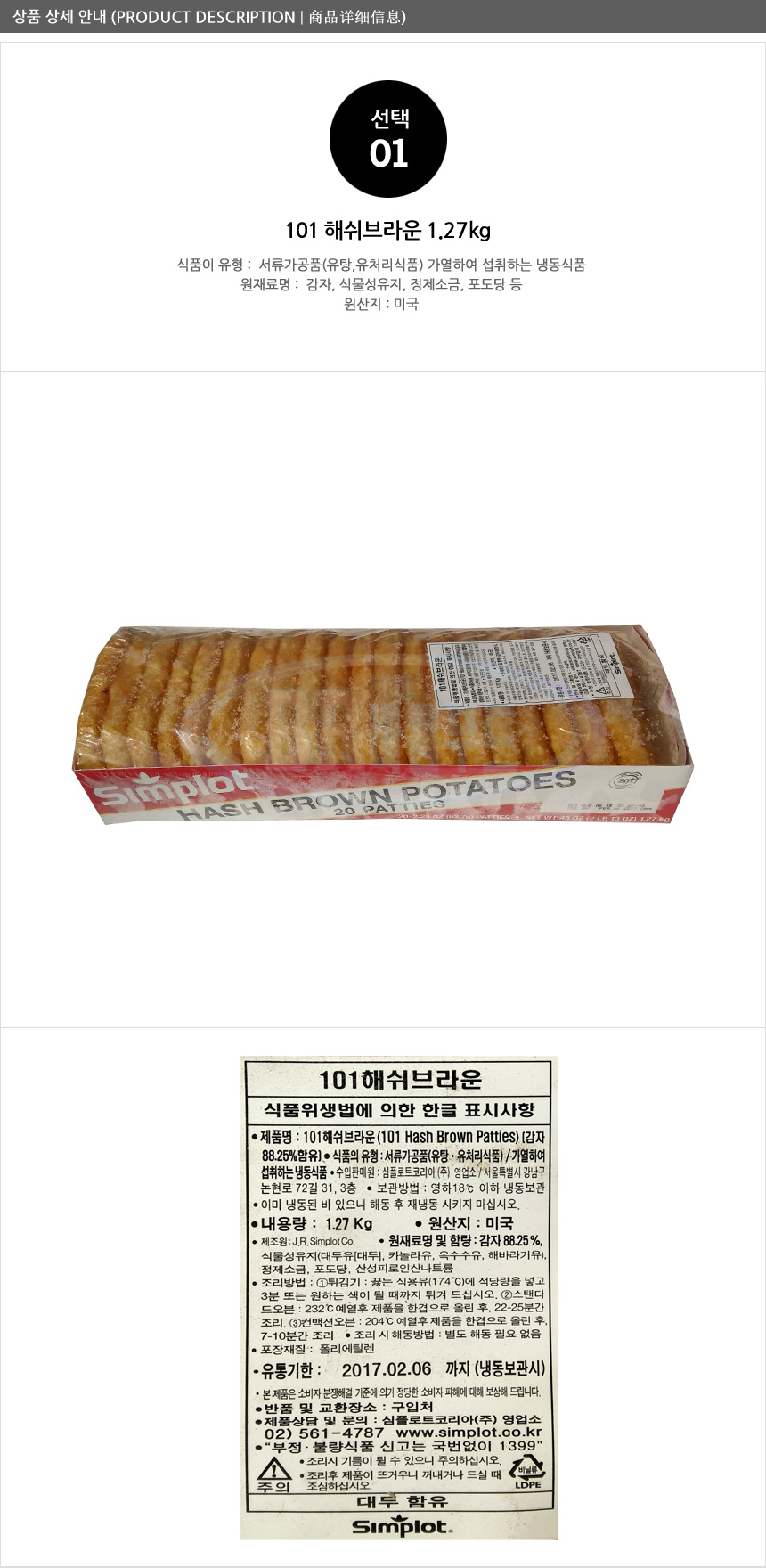심플롯 해쉬브라운 1.27kg (101s) 해시브라운 이미지