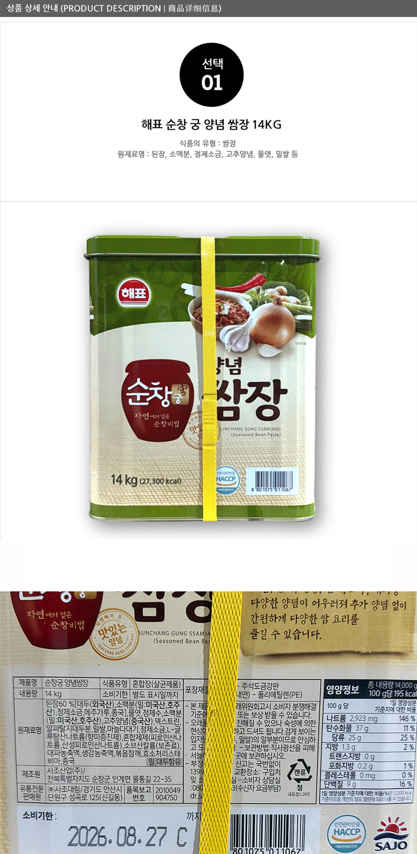 해표 양념 쌈장 14kg 이미지
