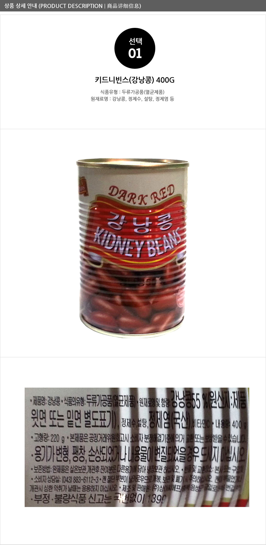 삼아 강낭콩 캔 400g 이미지