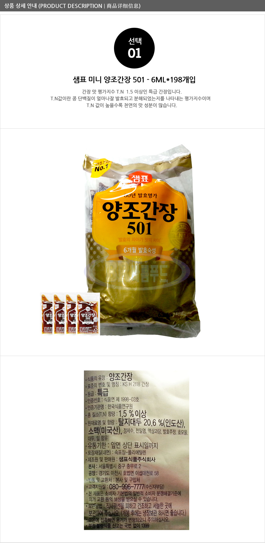 샘표 미니 양조간장501 / 1.2kg (6ml x 198봉입) 일회용 간장 이미지