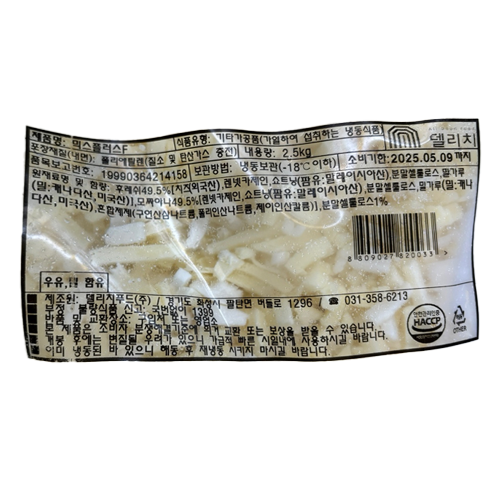델리치 치즈 2.5kg (후레쉬5:모조5) 혼합 피자 모짜치즈 이미지