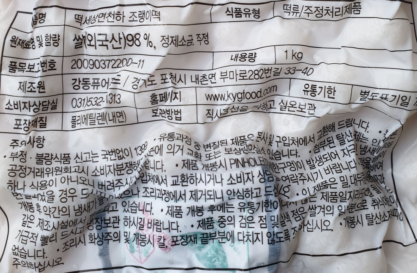 건영 조랭이떡 1kg 쌀떡