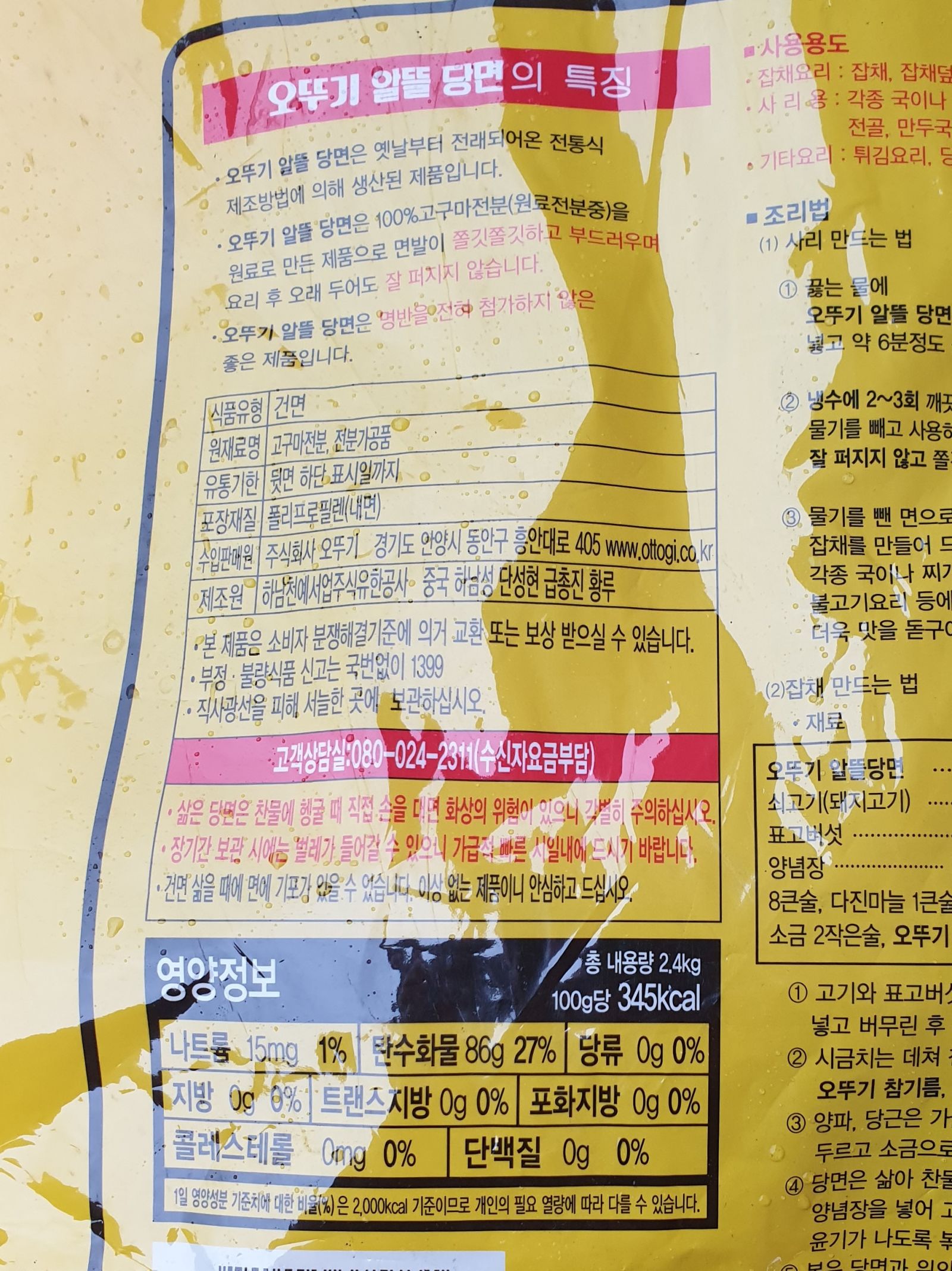 오뚜기 알뜰당면 2.4kg