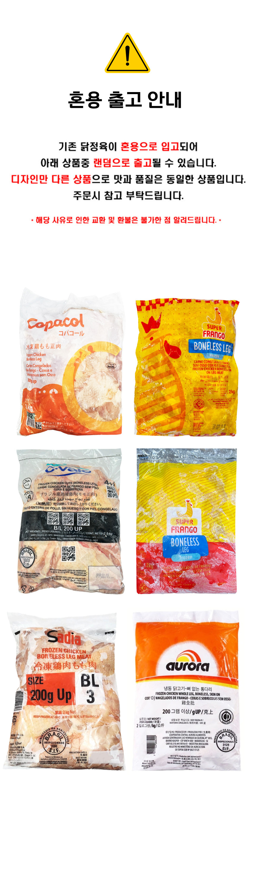 [교차출고] 닭다리살 2kg 뼈없는 순살 닭정육 브라질산 이미지
