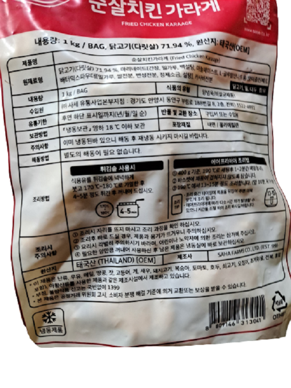 ★초특가★ 사세 순살치킨 가라아게 1kg 튀김