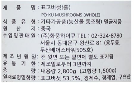 화풍 표고버섯 홀 2.8kg 통조림 캔 이미지