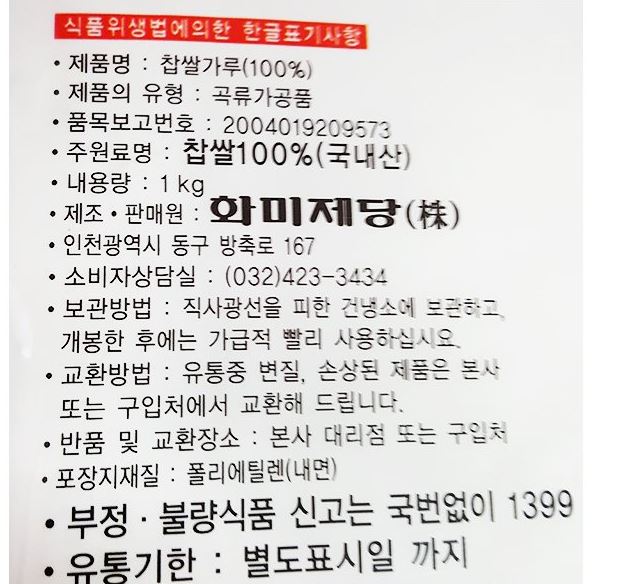 화미 국내산 찹쌀가루 100% 1kg