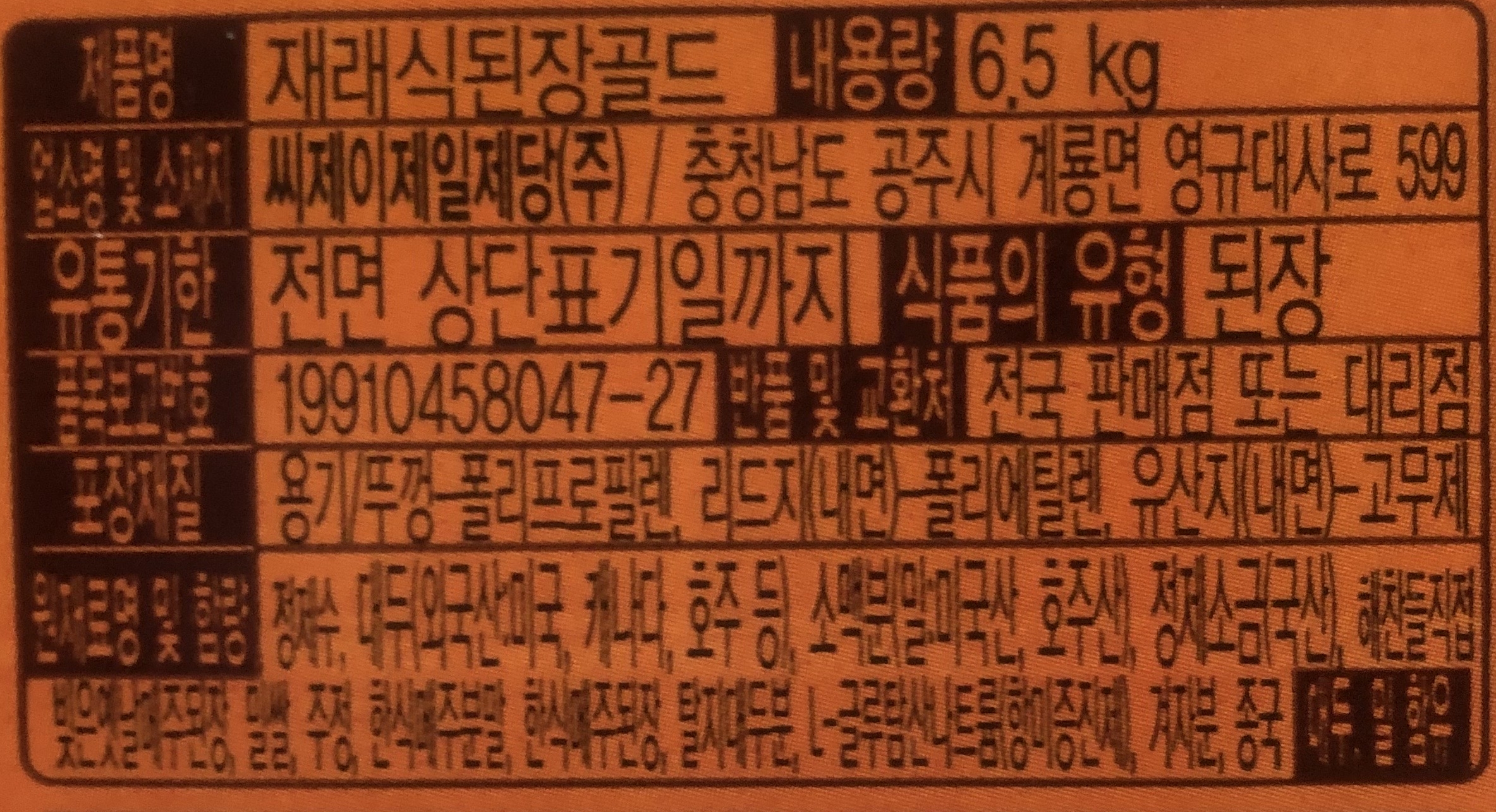 해찬들 재래식 된장 6.5kg 이미지