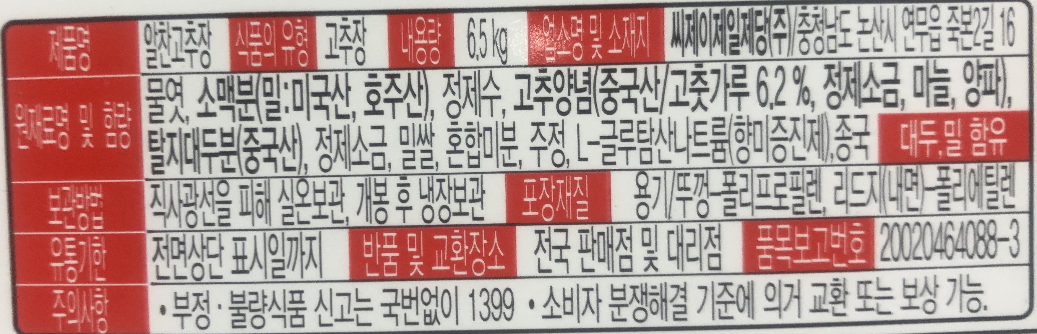 해찬들 태양초 알찬 고추장 6.5kg 이미지