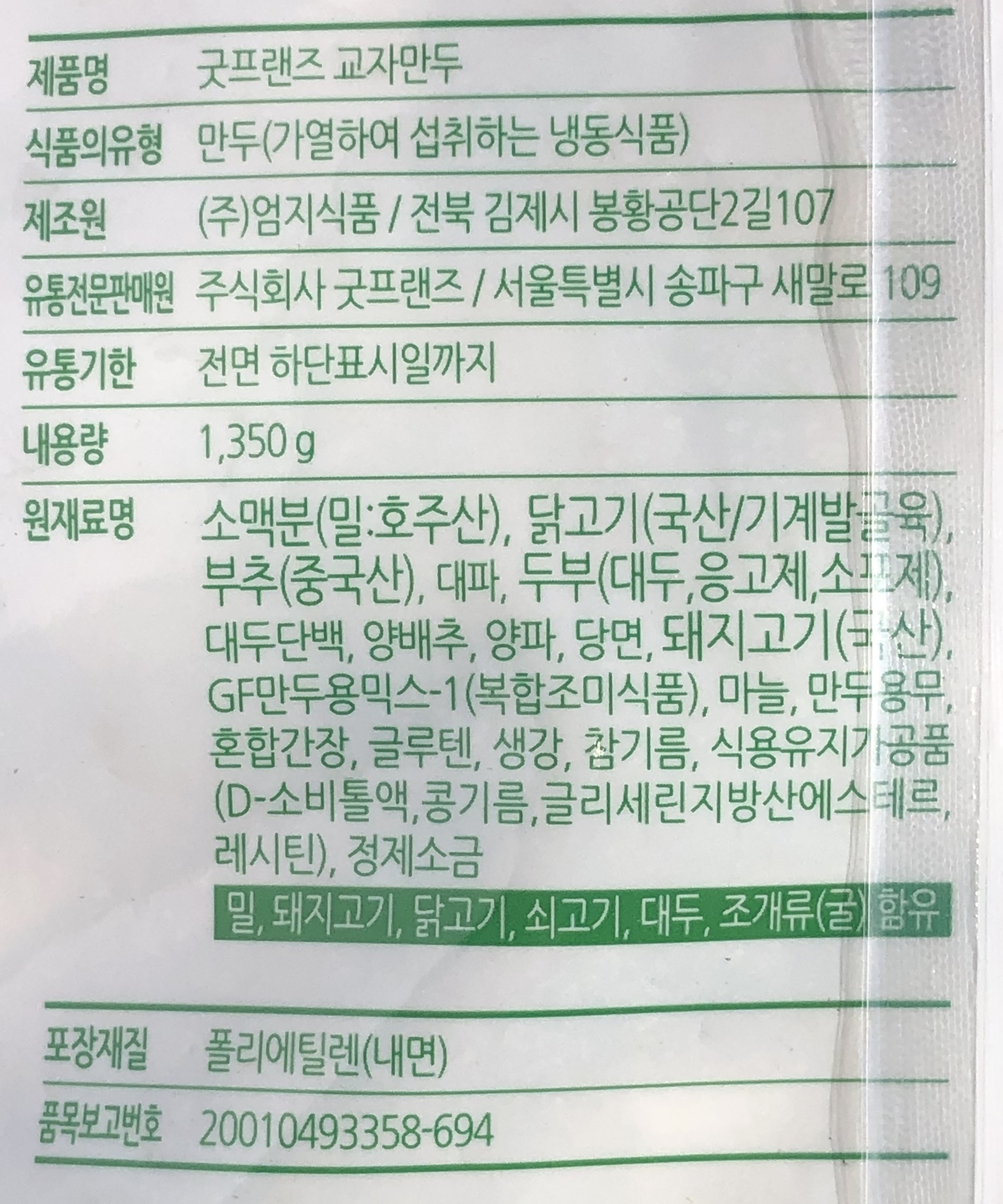 굿프랜즈 교자만두 1.35kg 담두