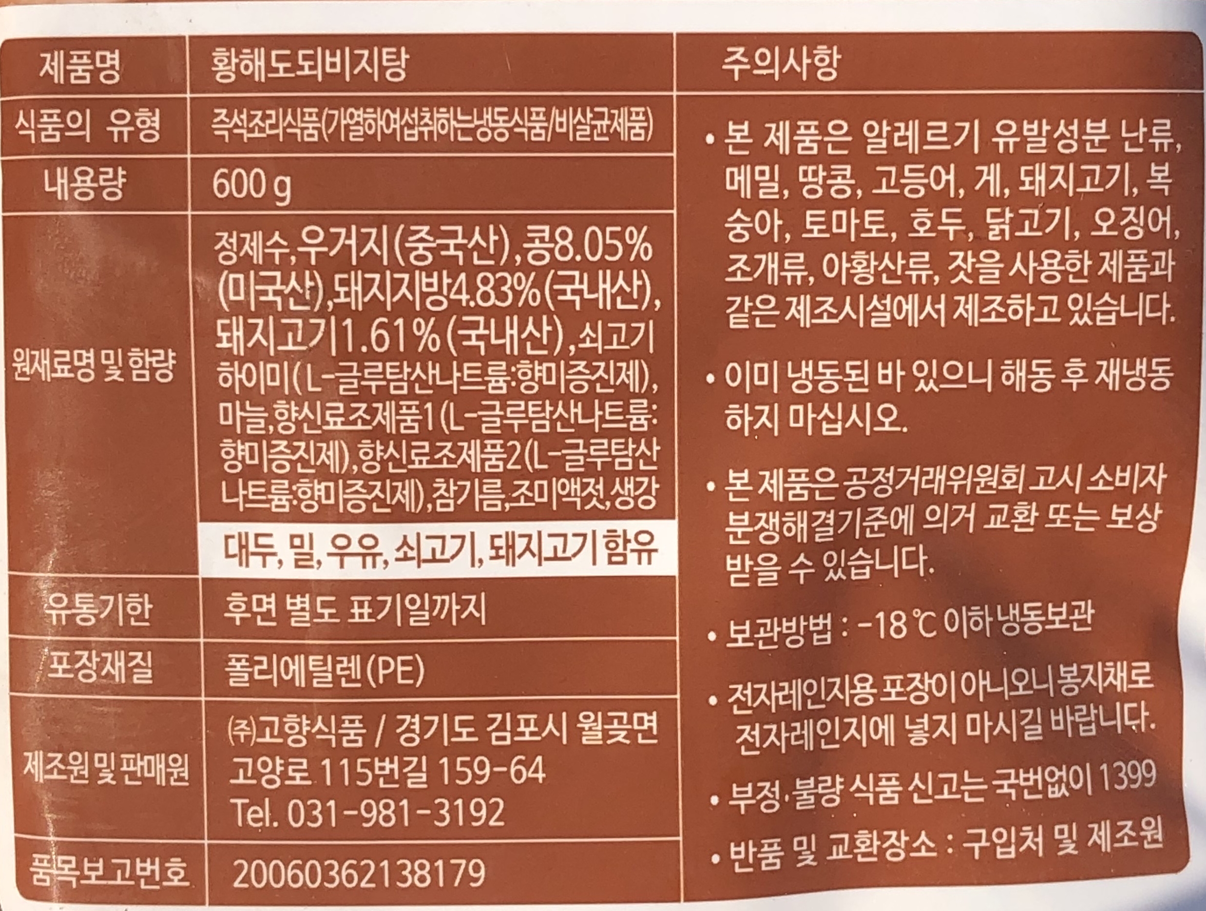 옛맛 되비지탕 600g 콩비지 이미지