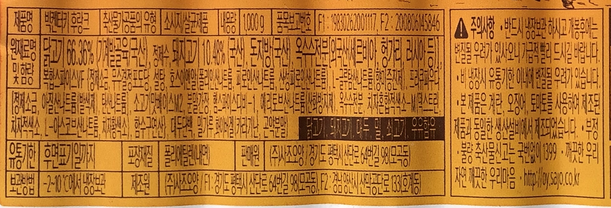 원재료명 및 함량
