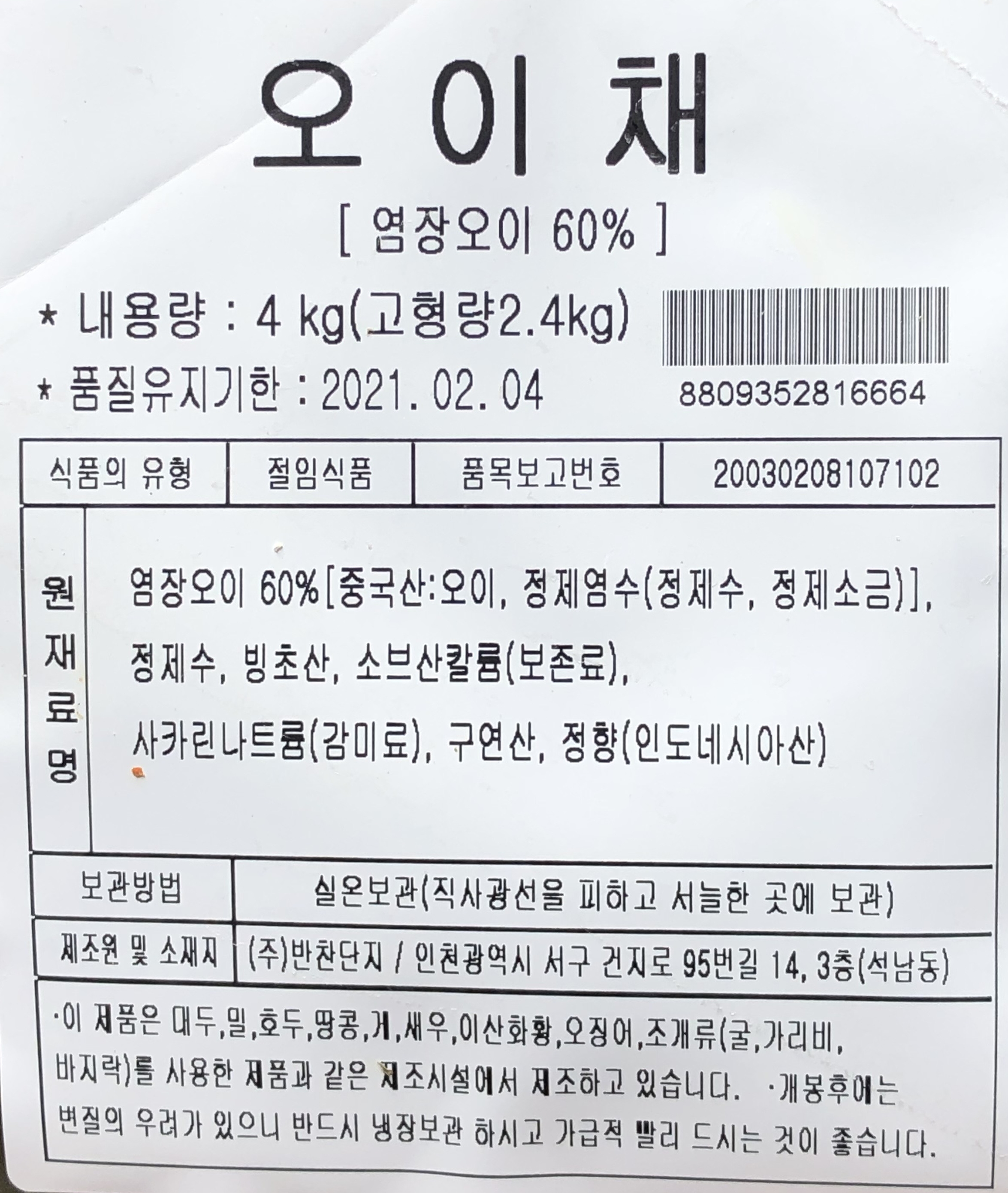 단지 오이채 4kg 오이지 피클