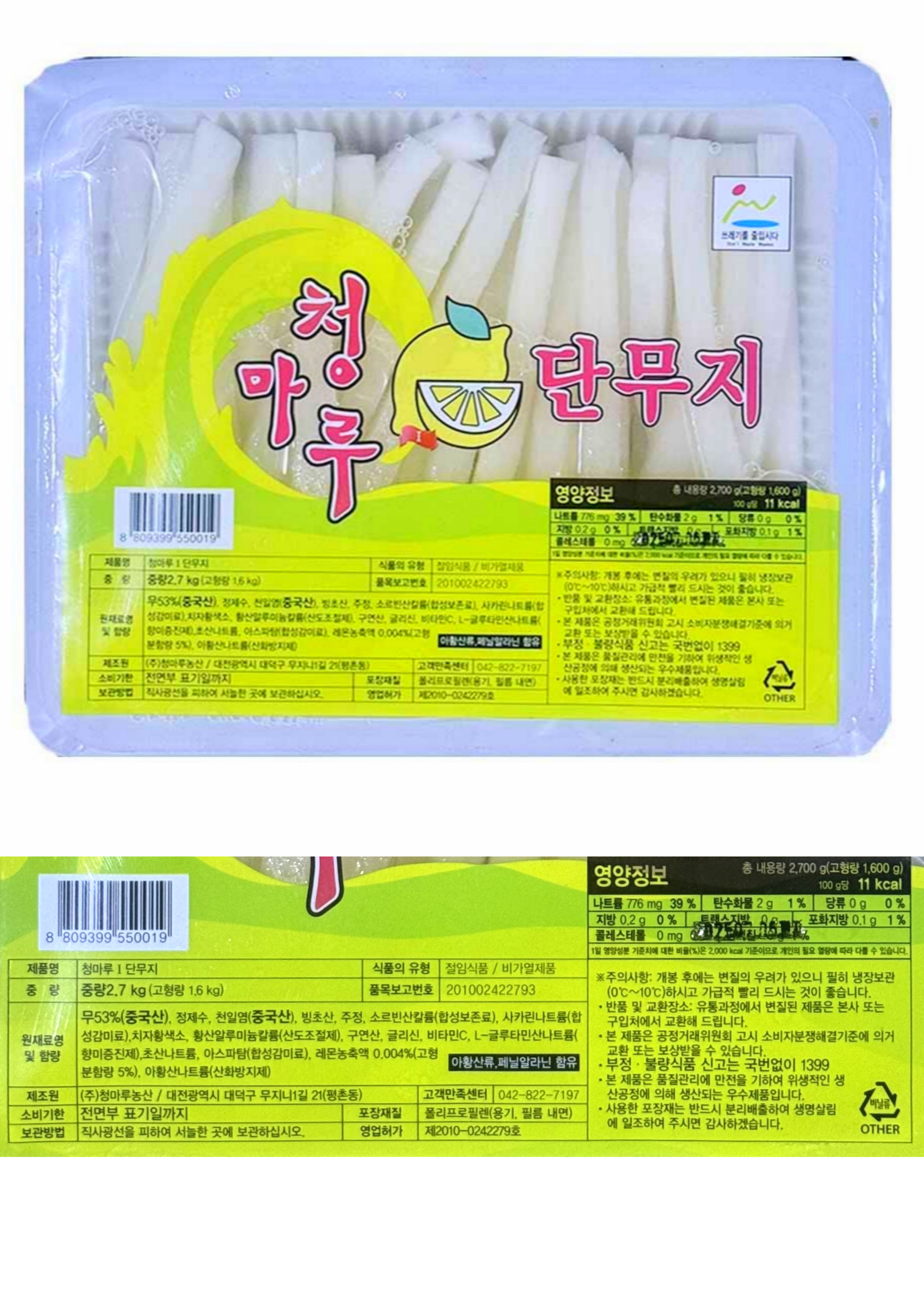 청마루 레몬맛 단무지 2.7kg (13mm,백조미) 이미지