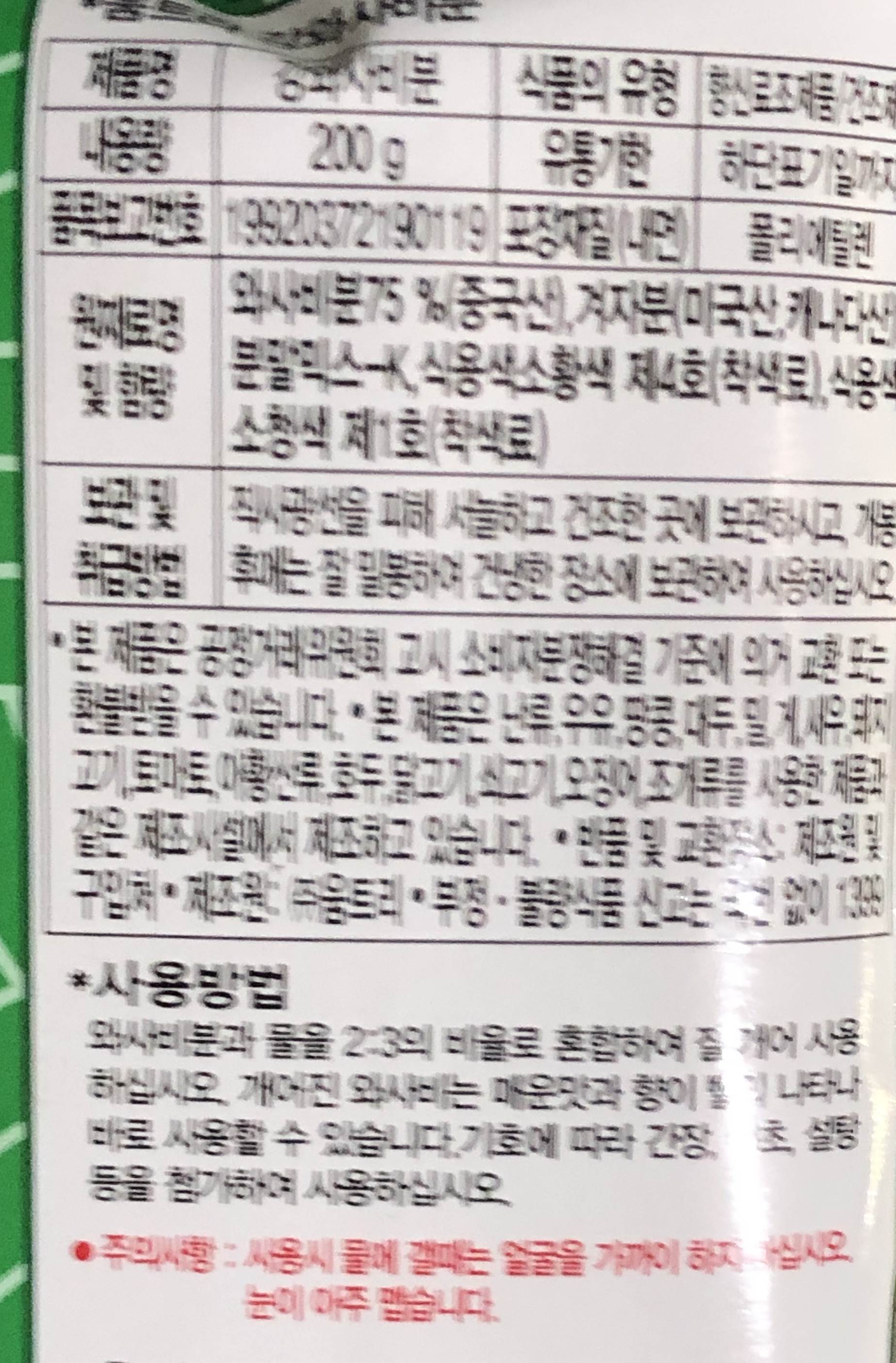 원재료명 및 함량