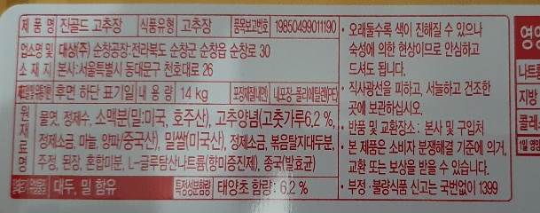 청정원 순창 진골드 고추장 14kg 별4개 태양초 이미지