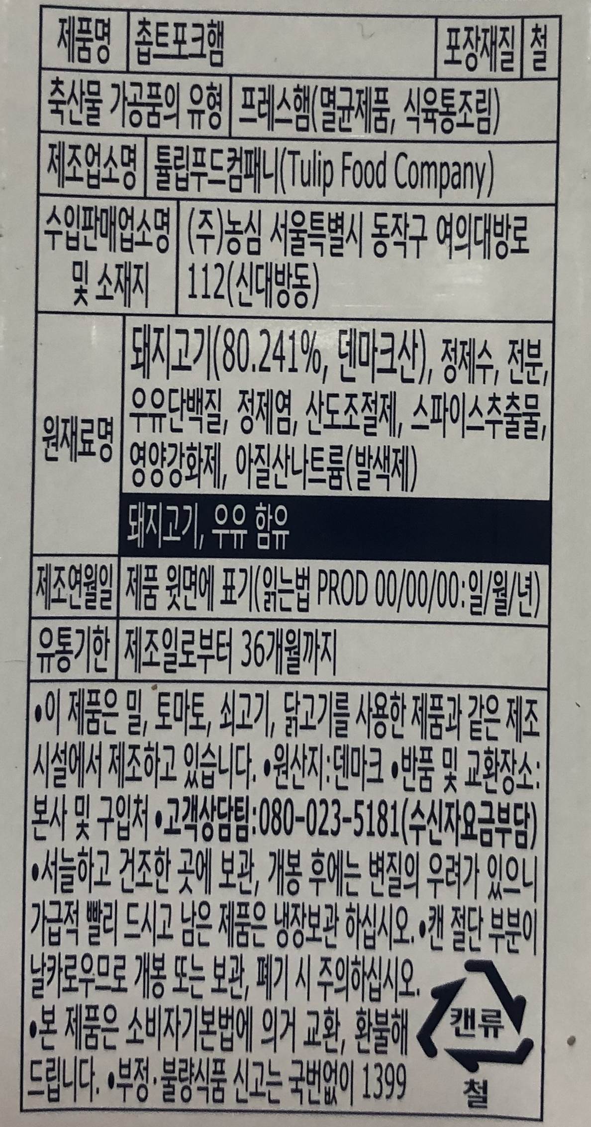 튤립 춉트햄 1.81kg A급 부대찌개햄 이미지