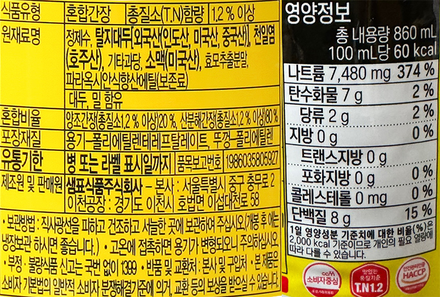 샘표 국간장 860ml 이미지
