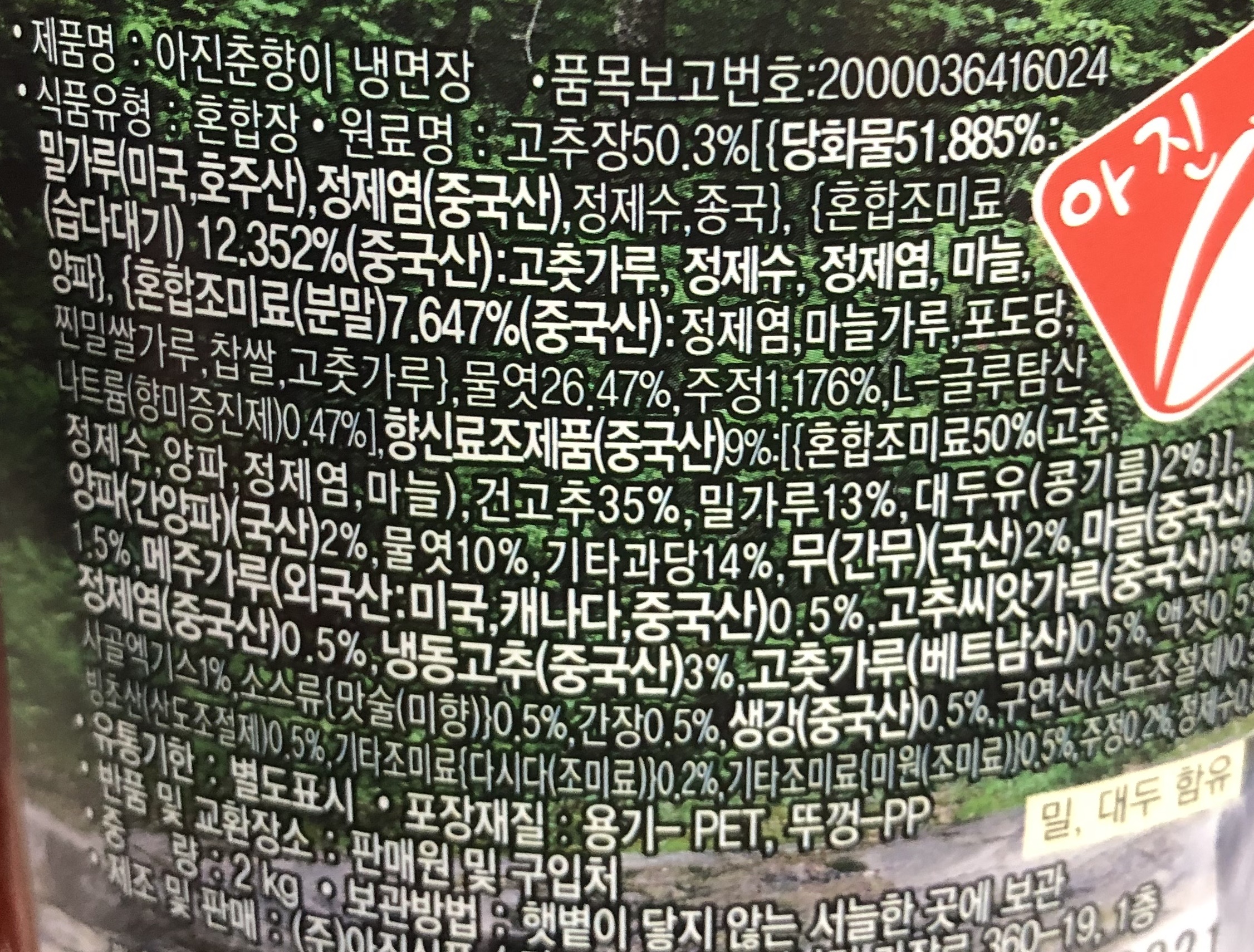 아진 춘향이 냉면장 2kg 양념 소스 이미지