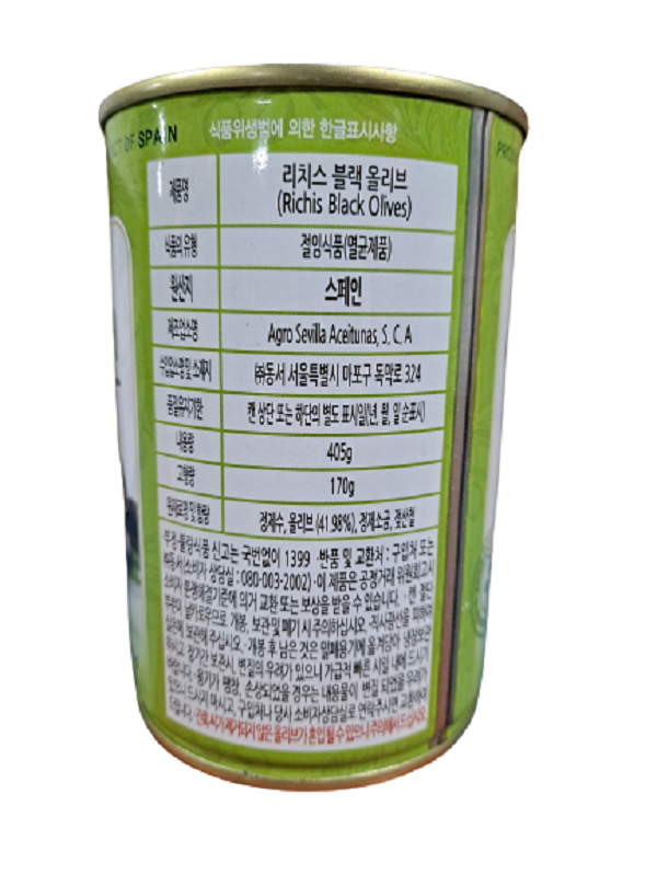 동서 리치스 블랙 올리브 405g (소) 홀 피티드 이미지
