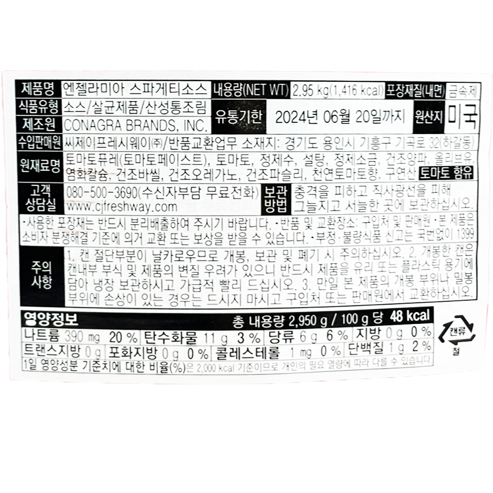 헌트 스파게티 소스 2.95kg 엔젤라미아 약 3kg 이미지