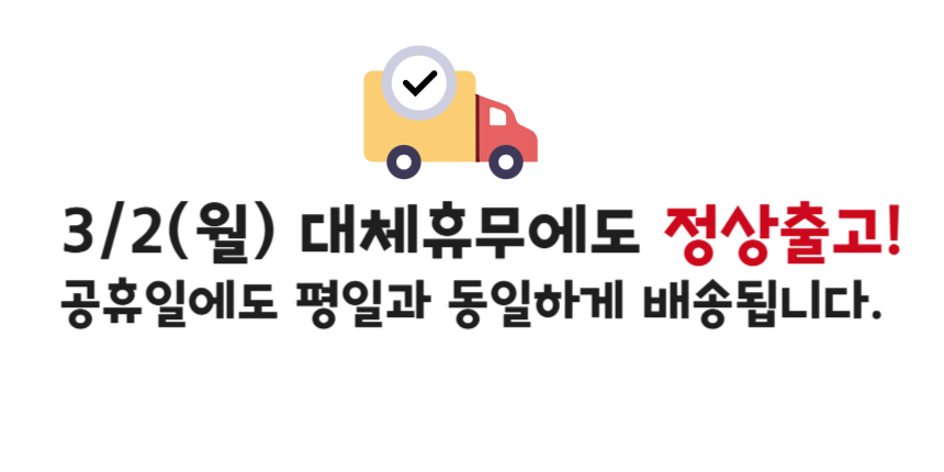 • 택배배송의 경우, 주말 및 공휴일 전일 및 당일에는 상품 발송이 어려울 수 있습니다.