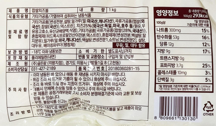 찹쌀 치즈볼 1kg (30-34알) 이미지