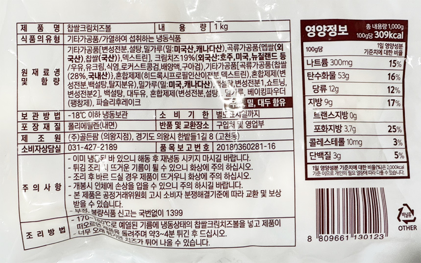찹쌀 크림치즈볼 1kg (30-34알) 이미지