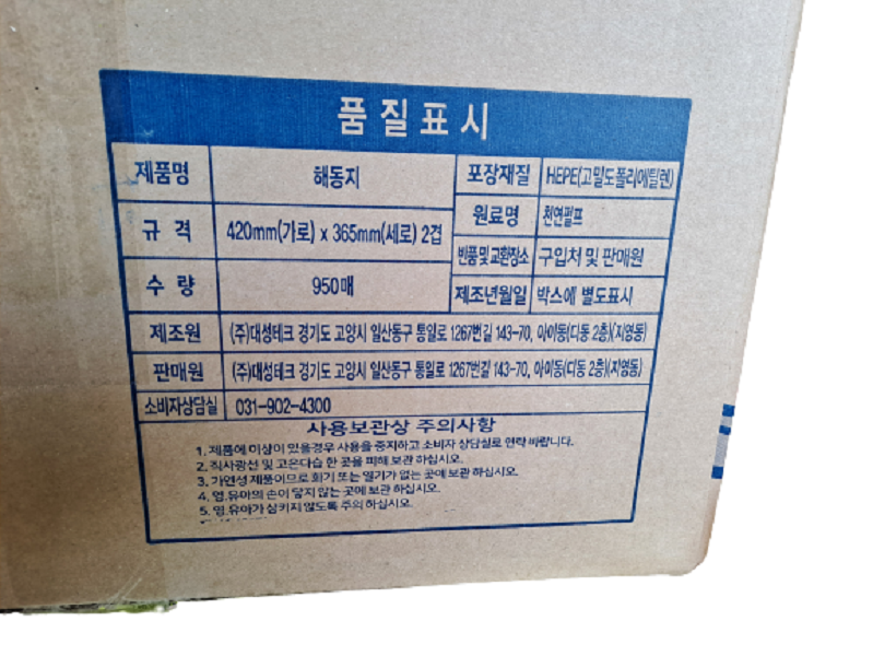 유진 해동지 950개입(소) 420mm x 365mm 2겹 (BOX 출고) 이미지