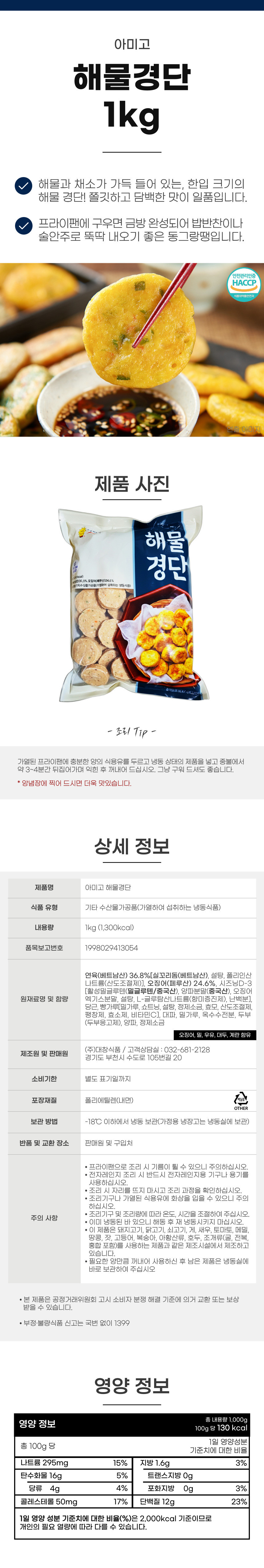 [교차출고]아미고 해물 동그랑땡 1kg 경단