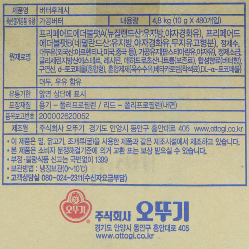 오뚜기 프레시버터(박스출고_10g*480입 4.8Kg/EA)